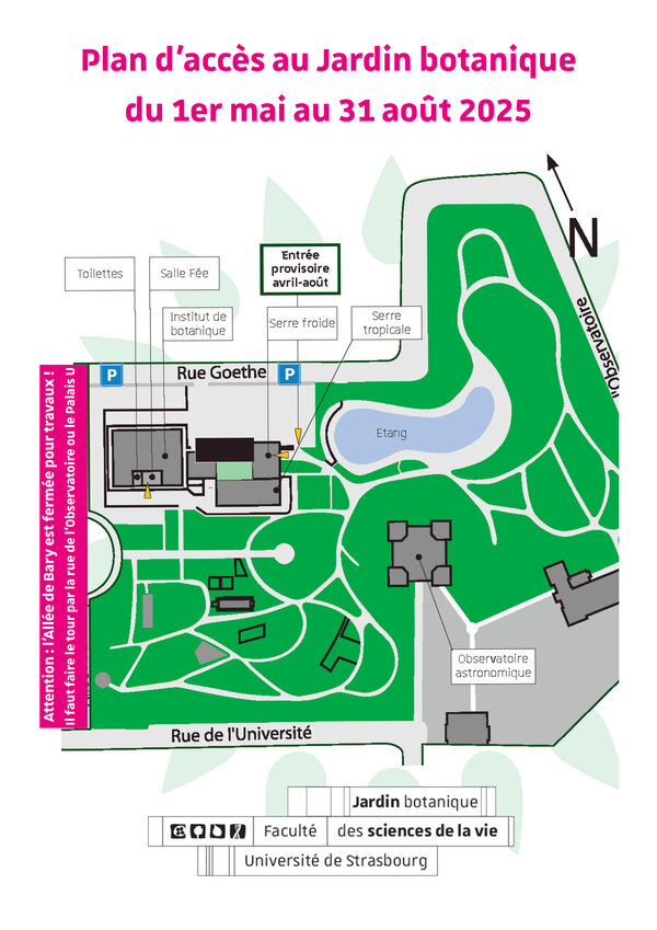 Écrin de verdure au cœur de la cité, véritable patrimoine vivant, le Jardin botanique de l’Université de Strasbourg est un lieu invitant sans cesse à la rencontre. Lieu de rendez-vous incontournable du botaniste avec sa passion, véritable livre ouvert pour l’étudiant qui découvre la biologie végétale, endroit vivant aux couleurs chatoyantes et aux senteurs variées pour celui qui aime à y flâner, le Jardin exerce une fascination bien singulière qui a traversé plusieurs siècles. Localisé aujourd’hui au cœur de la Neustadt, le Jardin est riche de plus de 5500 espèces de végétaux originaires de toute la planète. Fidèle à sa mission d’enseignement et de partage des savoirs, à l’heure où de nombreuses espèces vivantes sont menacées, où l’inquiétude sur la biodiversité de demain est légitime, le Jardin garde sa vocation à rester ce lieu de rencontres plurielles qui le caractérisent tant, cet outil scientifique de collection et de préservation, ce patrimoine d’exception et ce formidable livre ouvert pour la pédagogie dans le domaine des sciences de la vie.