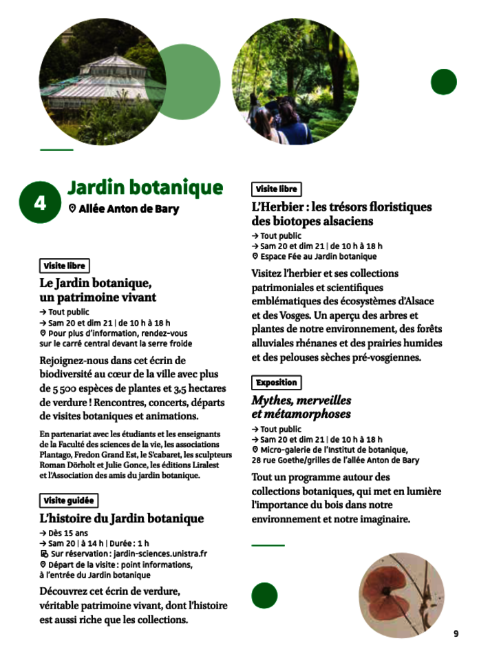 - Découverte de l’Herbier : Plongez dans les collections scientifiques de l’Herbier, qui abritent des trésors floristiques des écosystèmes alsaciens. (Samedi et dimanche de 10h à 18h, espace Fée.)