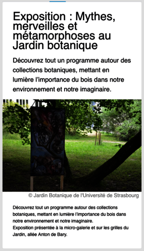 - « Florilège de Talents » : Découvrez les œuvres artistiques des étudiants de la Faculté des Sciences de la Vie, inspirées par le végétal. (Samedi et dimanche de 10h à 18h, serre froide.) "Florilège de Talents"