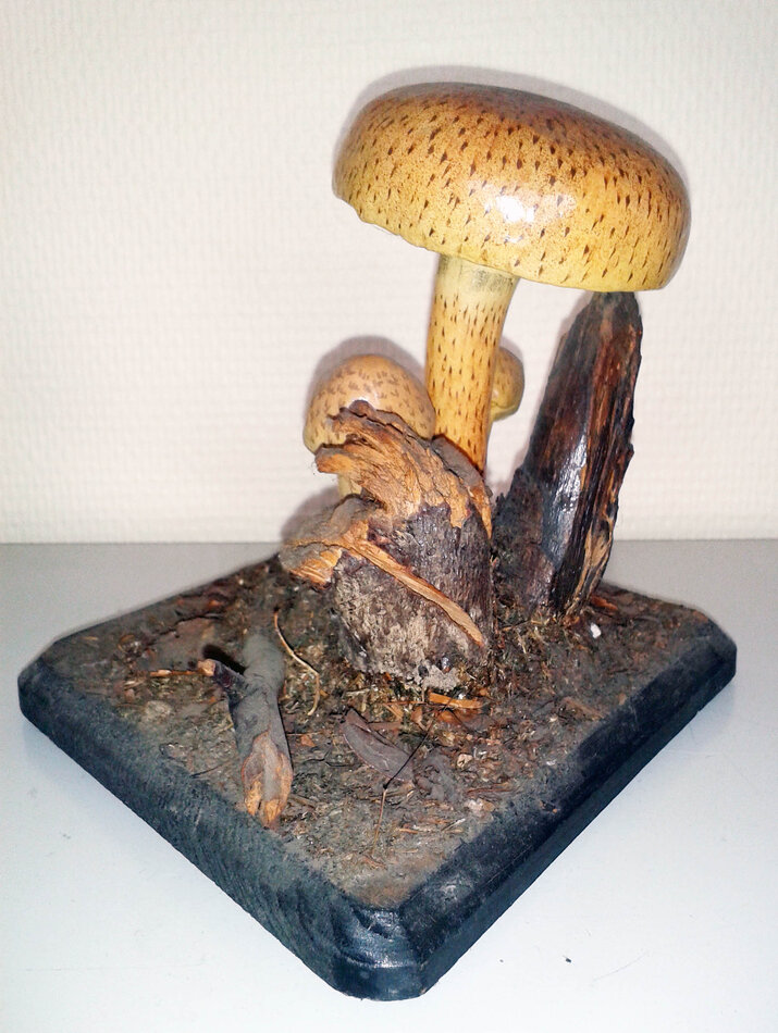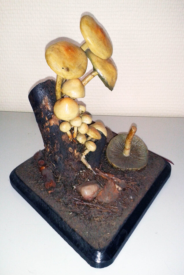 - Des modèles de champignons en plâtre et d'ovules et embryons en cire.
